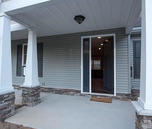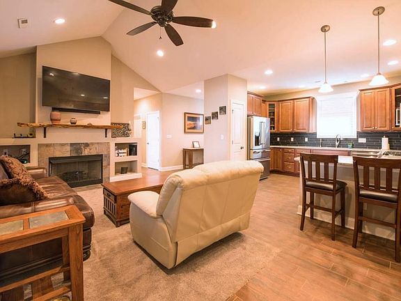 Craftsman style w/stone accents~One Level Living!Open floor plan w/10Ft. Ceiling height throughout.Covered front porch welcomes you into the Great Room w/Vaulted Ceil & fireplace. Hardwood looking tile floors thruout, except for tile in bathrooms and carpet in two bedrooms. Upgrades include $10K in appliances, $20K in landscaping & fencing, $6K in countertops,cabinets, fixtures. Stainless appl's. in Kit.w/pantry & snack bar. Granite ctrtops, staggered cab heights, tile backsplash,convection microwave & gas range/oven w/dual fuel. Split Bedrooms -luxurious Mstr Suite w/trey ceiling, WIC and spacious bathroom incl.dual vanities w/granite tops & tiled walk in shower. Mstr has private entry to Screened porch which opens to large wooded private backyard. Furnishings remain~see sep.list.