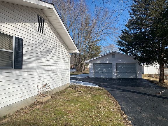Cute 2 bed, 2 bath home with a detached 2 car garage with a paved circle drive. Home is in good condition with an open living room/kitchen area and a bedroom on each end of the home. All appliances stay with the home. Large detached garage has electric and would make a nice workship.