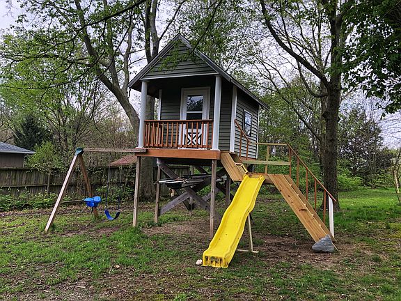 Welcome home! Charming bungalow with open floor plan is waiting for you! Renovated with over 25k in upgrades within the last 2 years, this 3 bedroom 2 bathroom home is cozy and welcoming. Living room open to kitchen and eat-in bar. White cabinetry in kitchen with dark brass hardware. Newly finished, large master suite with sizable walk-in closets, vaulted ceiling, and gorgeous private bathroom with soaking tub. Two bedrooms and full bathroom in the downstairs. High ceilings throughout home make the space feel spacious and airy. Roof replaced in 2015, new paint throughout home in 2015 and 2018. Rich dark brown laminate hardwood flooring in 2015. New light fixtures throughout home. All electrical updated. Super energy efficient foam insulation installed in 2018. Sealed basement with no water issues and ample storage with built in shelving and work bench. Appliances stay with home. Property also includes a large shed with tons of storage and a half bath. Shed is also heated. Shed has two very long built in work benches with organizers. Playhouse is ready for fun with two swings, slide, and indoor space with electrical. Nearly 2 acres of land with peach and plum trees. This is a truly delightful home and is priced to sell! Please contact seller directly at 217-549-0242