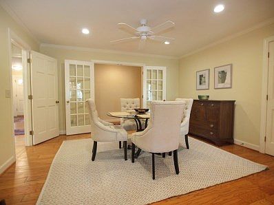 All brick home at Pinehurst National featuring 2-master suites and sits on 2-large estate lots (1.77-acres) that are beautifully landscaped. All the rooms in this home are LARGE....and everything is on one single level. No stairs to climb. Hardwood floors throughout, plantation shutters, crown molding, smooth ceilings, French doors, wide hallway to each room, brick fireplace in cozy Den, bay windows, quality. Large Dining Room with 10-foot ceiling, bay window, chandelier, built-ins, beautiful drapes.