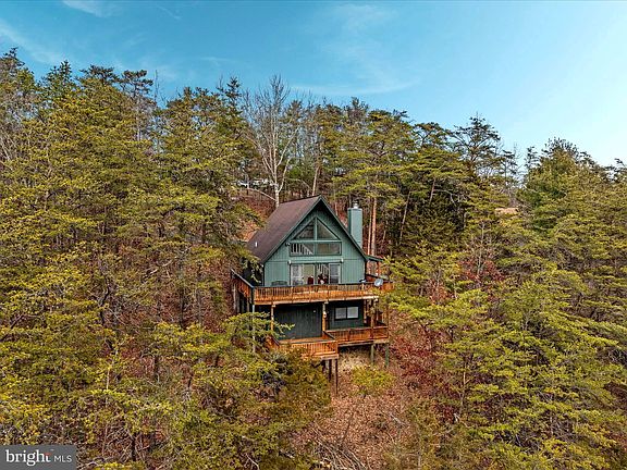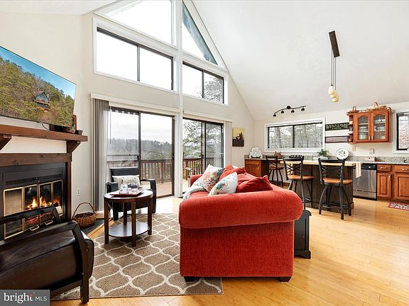 VIEWS! - Nestled in the picturesque Bryce Resort, this charming 1233 sq feet mountain retreat chalet offers breathtaking views of the golf course. The home features four bedrooms, along with two full bathrooms. The open-concept kitchen and living room boast granite countertops and bamboo flooring, creating a warm and inviting atmosphere. Convenience is key with main floor laundry and ample storage options throughout the house, including under-house platform storage for tools and recreational equipment. The lower level, with its separate entrance, provides versatile options for use. Cozy up by the propane fireplace or enjoy the stunning views from the upper and lower-level decks. All furniture in the house conveys with the sale, making this home move-in ready. This property provides easy access to a variety of amenities, including a lake for swimming, fishing, and kayaking, as well as mountain biking, skiing, tubing, ice skating, golf, tennis, and pickleball. The resort also boasts a clubhouse, restaurants, a playground, a library, a dog park, and an airport. During the summer, enjoy the Farmers Market every Wednesday from 9am to 12pm. Whether you're looking for a serene getaway or a full-time residence, this chalet at Bryce Resort is a perfect choice.