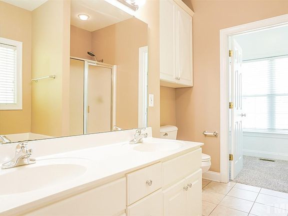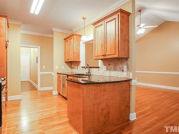 This Clayton cul-de-sac lot two-story home offers a den, office, stainless steel appliances, granite kitchen countertops, and breakfast bar, enclosed deck, and two-car garage.
