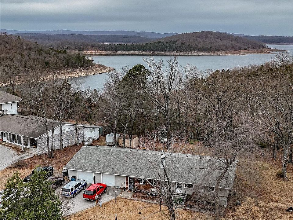 This 2,100+ sq ft lake-area property offers a 3 BR, 2 BA home on a level .76 ac m/l lot, bordering Corp land with seasonal views of Bull Shoals Lake. Located just minutes from both river & lake access, it’s the perfect blend of comfort and convenience. Inside you’ll find beautiful real wood floors and a living room with cathedral ceilings, exposed wooden beams, and a brick fireplace featuring both a wood insert and a pellet stove. The open layout flows into a spacious kitchen with custom cabinetry, new appliances, an island, and a dining room/sun porch that leads to the deck. The split floor plan offers flexibility, currently arranged with mother-in-law quarters that include a large family room and updated bathroom. A pantry, 26’x10’ deck, and oversized 32’x36’ attached garage provide plenty of storage and functionality. Practical upgrades make this home move-in ready: a 200-amp whole-house generator, updated plumbing and electrical, windows replaced in 2008, & a new roof in 2017.