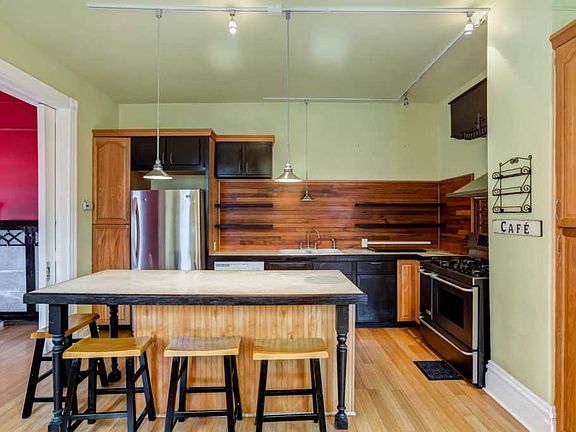 Looking for a home with tons of charm? Well you won't want to miss out on this beautiful home situated in the heart of the historic and Haynies Corner Arts districts. Upon entering, you will find a spacious living room that boasts beautiful flooring, a decorative gas stove with oak wood casing and stone surround, a gorgeous stained glass window, ceiling fan and is open to the kitchen. The kitchen features a breakfast bar, high end stainless steel appliances including a 5 burner gas stove and an eat-in dining area. The main level master suite has carpet, a ceiling fan and his and hers closets. The mater bathroom has a large vanity, tub and shower combo and tiled flooring. Upstairs you will find 2 more large bedrooms with original hardwood floors and another full bathroom. This home has the original hardwood floors, pocket door, stained glass and woodwork. 1 of the bedrooms has a beautiful rook-wood decorative fireplace. On the 3rd floor there is a partially finished walk up attic that could be finished and used as additional living space. This home also features a partially unfinished basement. Step out back to the private back yard with an open patio to entertain and a 2 car detached garage.