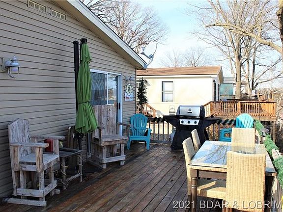 Manufactured home in Oklaterre community. Leased lot, 328 a month. Includes water, trash and road maintenance. Has community boat ramp, comes with a slip in the community dock with a boat lift and a STUNNING VIEWS! A great deck facing the water. just updated in 2020, most carpets and flooring, deck rebuilt, etc. Roof is less than 1 year old. Close to everything in Laurie and Sunrise Beach. CoMo fiber-optic high speed internet. Truly affordable way to live or stay at the lake while enjoying million dollar views every day!
