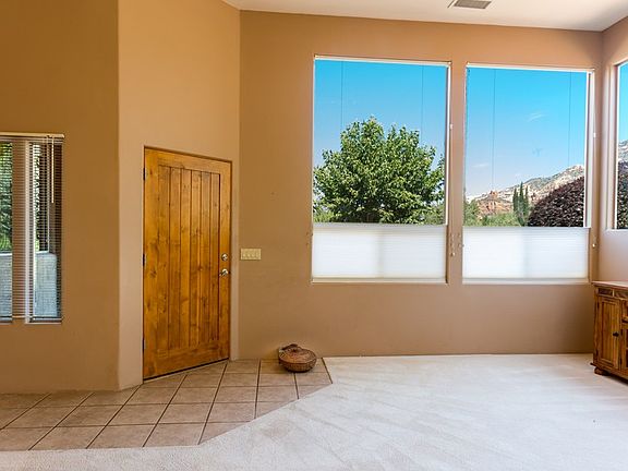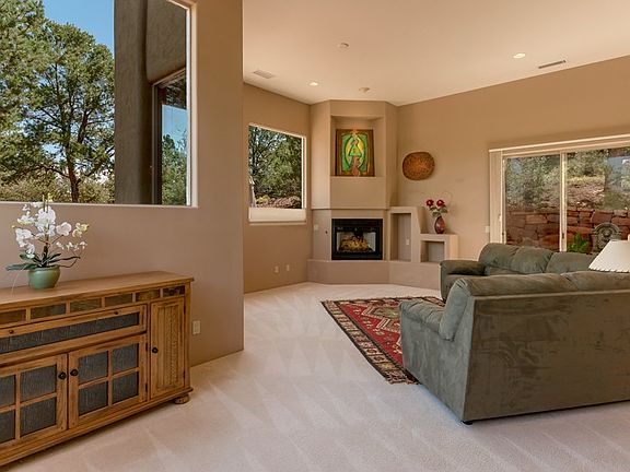 Beautiful Southwest Contemporary with 14 ft. ceilings and great views will delight you. From your elevated position amidst lush landscaping you will see many of Sedona's famous rock formations--Coffee Pot, Chimney, Thunder, and more. Within, you will find desirable, spacious 4 bedrooms (or use one as as office), a great room with fireplace, granite counters and stainless steel appliances in the kitchen and a private master suite up a few steps. Sedona's mild climate will allow you to enjoy meals and the company of friends on the private patio in a gorgeous red rock setting. Seller will have the interior painted buyer's choice of color after closing. What's not to love? Call today for a showing.
