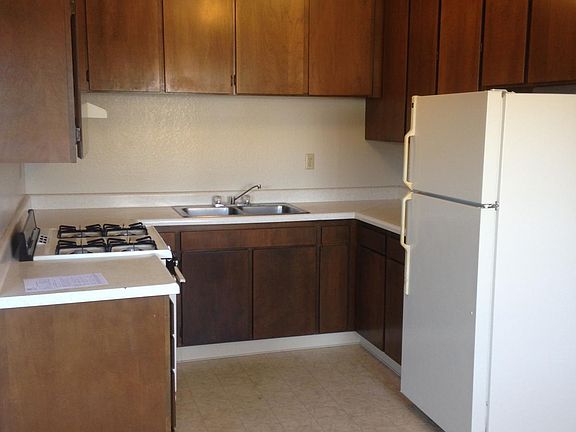 This 2 bedroom, 1 bath downstairs end unit apartment is very spacious. It has a range, oven, refrigerator, 2 enclosed patios, an assigned parking space, and coin-op laundry. Tenant pays gas/electricity. NO SMOKING/NO PETS.