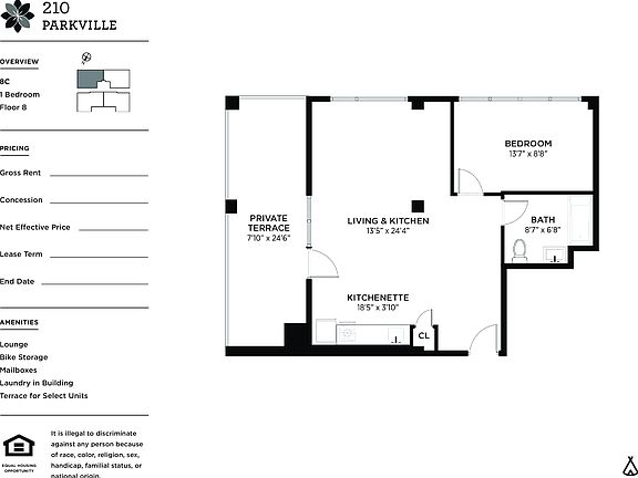 ** HUGE PRIVATE DECK** Introducing 210 Parkville, a brand new fantastic luxury building in Kensington. The building is perfectly located right off Ocean Parkway, with lots of diverse dining options, several transportation options, and just a short bike ride to Prospect Park. The apartments are uniquely designed, get great light, have high ceilings, solid hardwood floors, and high end modern appliances. The buildings amenities feature an elevator, lounge, laundry, courtyard, bike storage and a roof deck! A must to see unit..