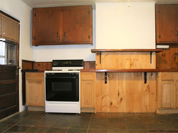 Great investment or live in the house yourself. With a backyard and private driveway. Half of the backyard is fenced in. There is a nice size covered porch on the rear of the house. Inside you will find a Large eat in kitchen with a slate floor. There are bathrooms on both levels of the house with the upstairs bathroom having a claw-foot tub and wainscoting! There is carpet and hardwood throughout the home. In the living room there is a hookup for a wood or pellet stove along with french doors that could be a study or sitting area. The Master bedroom has two large closets and fireplace that is unknown if operational. There is also a bonus room that could be a walk-in closet or an office that is connected to the master bedroom. The property was being rented at $1200.00 per month and the tenant pays all of the utilities. Being in the village allows you to walk to it all Saugerties has to offer. Some of the windows have been replaced.