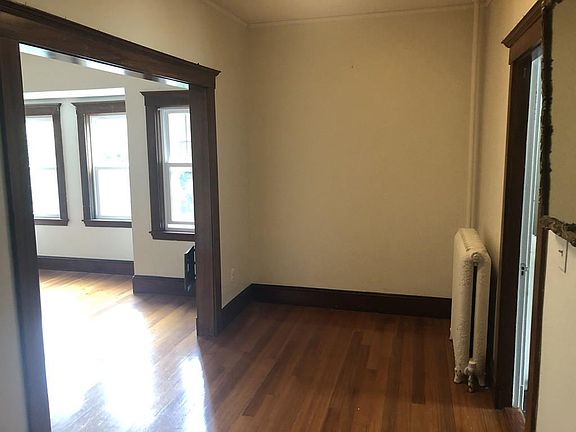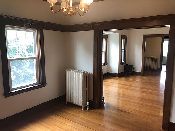 Massive and charming Philadelphia style upper unit of a two family. The separate entrance, shingled style home has grand features such as high ceilings, period details, custom builtins and beautiful woodwork throughout. Updates such as newer main floor full bath with tiled shower stall and tiled floor. Updated kitchen cabinets w/ in unit washer dryer. Newer windows throughout the unit. Main floor has a beautiful brick (decorative) fireplace and picture moulding. Dining room has 2 massive builtins with oversized plate rail moulding. Bonus 3 seasons sunroom spans the width of the property. Three bedrooms on the top floor with second full bath. Unbelievable amount of in unit storage. 2+ car parking off street. Possibility for a 4th bedroom on the main floor. Cats OK. Available now.