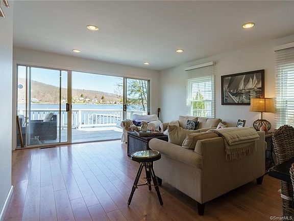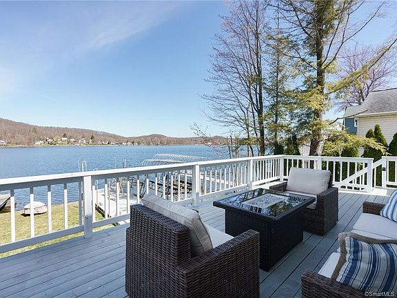 FINALLY!!! **HIGHLAND LAKE WATERFRONT** Lake House that is TURN KEY and Ready for the Summer! Located on desirable Perch Rock Trail, a quiet street overlooking First Bay on Highland Lake; a 444-acre boating lake, in the town of Winchester, Litchfield County CT. Offering 3 Bedrooms, 2 Full Bathrooms with an open floor and PANORAMIC VIEWS of the water. THIS HOUSE FEELS MUCH LARGER than the sq.ft. indicates. A First Floor Bedroom adjacent to an updated Beautiful Marble Bath. The OPEN FLOOR PLAN has two living areas, both living areas with sliders open to spacious newly painted deck overlooking the water. The PERFECT location to enjoy breathtaking SUNSETS. There is plenty of parking on this level lot with access all the way to water. The property boasts two docks, a boat lift and jet ski lift, and is the ideal location for swimming and paddle boarding/kayaking/sailing. Central Air, Updated Lighting, Engineered Hardwood, make this an Easy Maintenance Free Choice with plenty of STORAGE for your Toys. A walkout basement, flat yard all the way to the water makes this an easy choice for lake living. All docks, boat lift and jet ski lift included in the sale. The Ring doorbell and Nest Thermostats allow for remote control when not at the property. **DON'T MISS THIS OPPORTUNITY TO OWN WATERFRONT!**