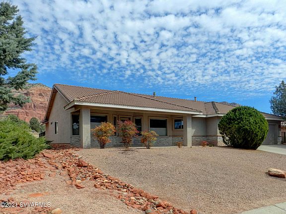 . Now offering a 3 bedroom 2 bath home, plus a den and a 3 car garage in the heart of Village of Oak Creek. Open floor plan, split bedrooms in one of Sedona's favorite neighborhoods The home features updated appliances granite and fresh interior paint. An additional den would make a great office or library! Covered patios in the front and back make for a wonderful entertaining areas or a quiet place for morning coffee. EZ care landscaping, tile roof, and fabulous location make for a great place to call home or your weekend getaway.