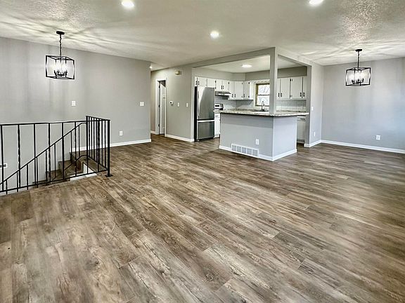 Welcome Home! This Southside home offers an open living, dining, and kitchen area. On the main level, there are 3 bedrooms and 2 baths. Down to the lower level, where a spacious family room awaits, complete with a cozy fireplace & walk out access to the spacious backyard that offers .42 acres for entertaining as the lot to the west of the property is included. Two more bedrooms & enjoy the convenience of ample storage closets, a half bath, and a laundry area, all seamlessly integrated into the home's layout. This home comes complete with kitchen appliances and two exterior storage sheds for added convenience. Fresh paint, new carpet, and updated light fixtures bring a modern touch to the space. Plus, with an attached two-car garage. Welcome to your new home sweet home!