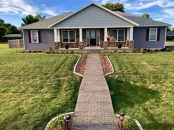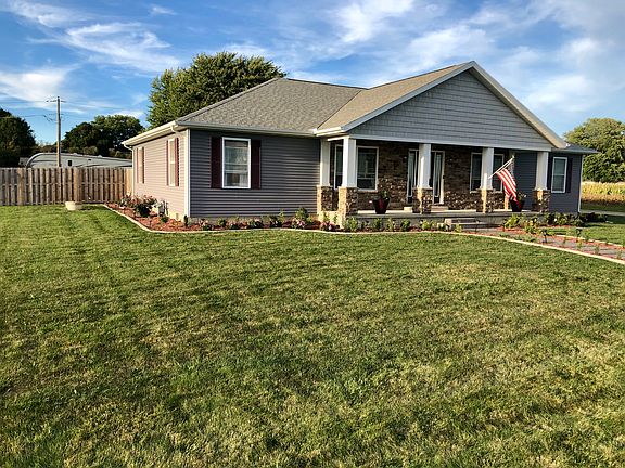 Absolutely breathtaking custom designed/built one owner Emden, Illinois 4 bedroom, 3 full bath 2,100+ square foot stone/vinyl sided ranch style home situated on the edge of town overlooking the countryside -- when only the finest will do! Walk in the front door and be welcomed by an incredibly open and inviting living/dining/kitchen concept -- WOW! Entire concept boasts soaring cathedral ceilings -- living room features great floor space -- kitchen/dining area is host to a sprawling center island/breakfast bar, custom Amish oak soft close cabinetry, tile backsplash, stainless Frigidaire appliances (all to remain), plenty of room for a large table and chairs, and French doors that lead to a fantastic screened rear porch. Home also features a great split bedroom concept -- west side of home features two gracious bedrooms -- both with roomy closets in addition to an adjacent full hall bath -- east side of home features a grand master suite boasting trey ceilings, crown molding, ample floor space, lovely adjacent full bath with a double vanity, whirlpool tub, in addition to a walk-in shower, and a huge walk-in closet (accessed from bedroom as well as bath). East side of home also features a large fourth bedroom/den -- perfect for guests! Interior also features a third full hall bath, large hall laundry room, and a conveniently located mechanical room. Property also features a fantastic covered front porch overlooking the surrounding open fields, an oversized fully finished/insulated three car nearly 1,300 square foot attached heated garage with eight foot tall garage doors in addition to pull down attic access (partially floored and lit), attractive low maintenance stone/vinyl sided exterior, awesome exterior soffit lighting (gorgeous at night!), deep lit climate controlled crawlspace -- the list goes on! Privacy fencing added in 2017 -- exterior landscaping enhanced in 2018. City water/private septic system on premises. All appliances to remain with property upon settlement including washer and dryer. Incredibly well built/wonderfully insulated, this custom designed/built 4 bedroom, 3 full bath 2,100+ square foot small town corner lot low maintenance ranch style home lacks nothing -- and awaits new ownership! Call today -- 210 Prairie Lane, Emden is without question a rare find in todays Logan County real estate market!