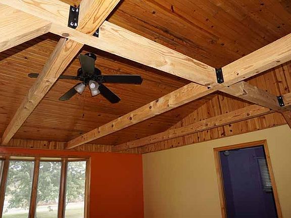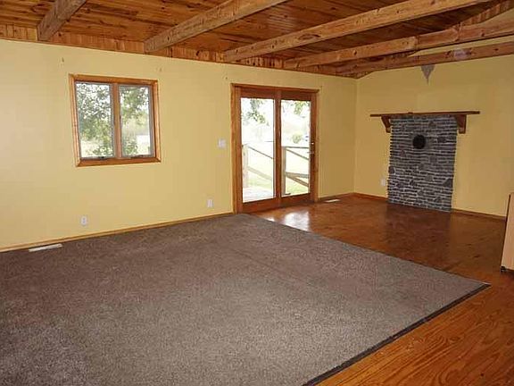 Nice country setting with trees and a water view. There is a claw foot bathtub in one of the bathrooms. Large deck and wood stove flue.