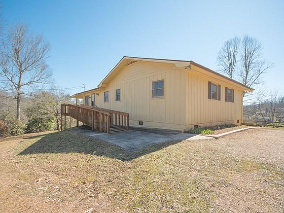 What a GREAT setting & view at this 2 Bedroom 2 Bath home on a full unfinished basement. 1.24 acre lot has a fantastic level yard / garden area as well as a light wooded area. Plenty of parking and a great deck - covered and uncovered sections - even has a ramp for easy access. Once inside you're greeted with spacious rooms and lots of windows to let the light in. Main level living with Kitchen, Dining, Living Room, Laundry, 2 Bedrooms and 2 Full baths. The basement is ready for anything you want, its currently great storage space and even has a single car garage - or can be finished out as it has inside and outside access. Woodstove in basement can be set back up. Call today to see this charming home located in the beautiful Iotla valley. Some windows have been updated and roof has been updated just 10 years ago.