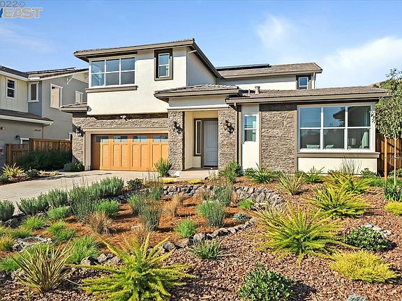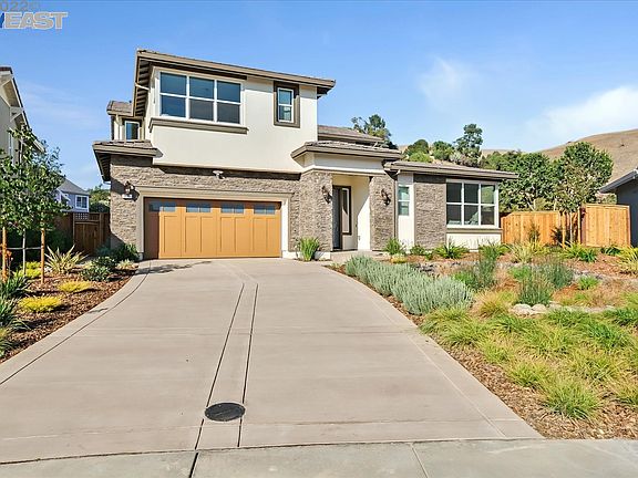 Beautiful New Construction! View of the Hills! 4 bedrooms, 4.5 baths, 2 car garage, 3780 square feet on a 12,000+ square foot lot at the back of the cul de sac. Each bedroom has its own bathroom. 1 bedroom, 1.5 baths downstairs. Formal dining room or office option. Volume ceilings on both floors. Huge Great Room. European Oak Engineered Hardwood Floors. Primary bedroom suite features large walk in closet, quartz vanity, Tub and Shower surround, and a large covered patio to enjoy the hill views. Deluxe gourmet kitchen features Thermador 36" 6 burner SS gas cooktop, SS Convection oven, SS Refrigerator, Microwave, & Dishwasher. Quartz counter w/full tile backsplash. Dual compartment cast iron sink, walk-in & butlers pantry and large island w/oversized breakfast area. Huge covered patio of the great room w/full length opening sliding glass doors. Dual zone HVAC, tankless water heater, solar panels, 50 amp car charger, "ring" doorbelll. A lot of house for the $$.