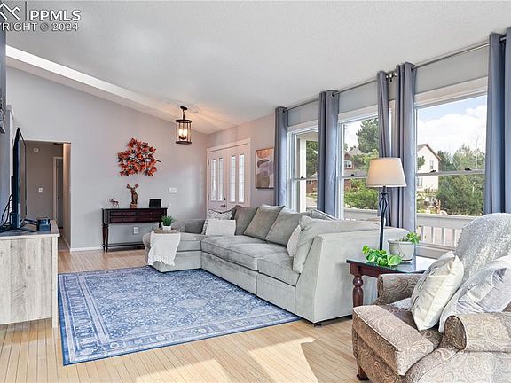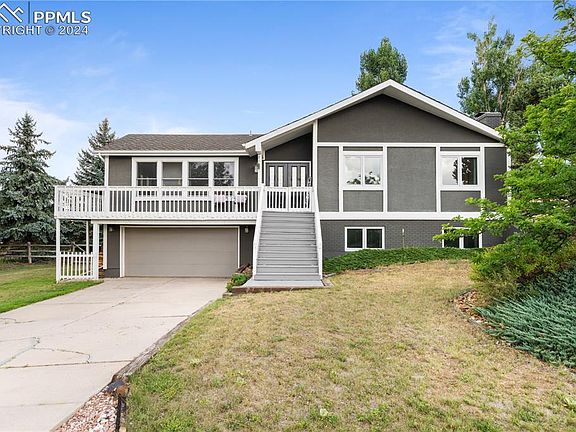 **POSSIBLE SELLER INCENTIVES**Welcome to this stunning raised ranch home sitting on nearly half an acre in the heart of Gleneagle, one of Colorado Springs' most coveted neighborhoods! Step up the enchanting stairs to the double front doors and wrap-around deck and into a bright, inviting space with floor-to-ceiling windows showcasing breathtaking MOUNTAIN VIEWS! Step outside to enjoy the deck on both the front and mountain side of the home, perfect for relaxing or entertaining. Inside, you'll find a finished basement with NEW FLOORING, a remodeled bathroom, and one bedroom with a pocket door for privacy if needed for guests. FRESH PAINT in most rooms gives the home a modern and inviting feel. Just some other updates include newer carpet in bedrooms less than a year old, new fixtures throughout home, and other minor updates. Enjoy the walk out the door straight to the patio from your primary bedroom to enjoy your morning coffee. Walk up a couple of steps to the deck and enjoy the mountains or create a cozy spot somewhere on the property with the outer fence and enjoy the quiet of this neighborhood. Multiple walkout doors throughout the house (breakfast nook, front door, primary bedroom, garage has its own door to the side yard as well) invite you to step outside and soak in the stunning views. Imagine watching the U.S. Air Force Academy's thrilling air shows right from your deck! With Colorado Springs’ vibrant cultural scene, this home also offers proximity to shopping, trails, restaurants, and so many more amenities and is just a short distance from downtown. With an easy commute to Denver and being in the highly desirable D20 school district, this home is perfectly situated for both convenience and entertainment. Just minutes from the Air Force Academy, mountains, and close to all military bases. Don't miss your chance to live in this desirable community, where luxury meets comfort. DO NOT MISS THIS OPPORTUNITY TO LIVE IN A DESIRABLE AREA.