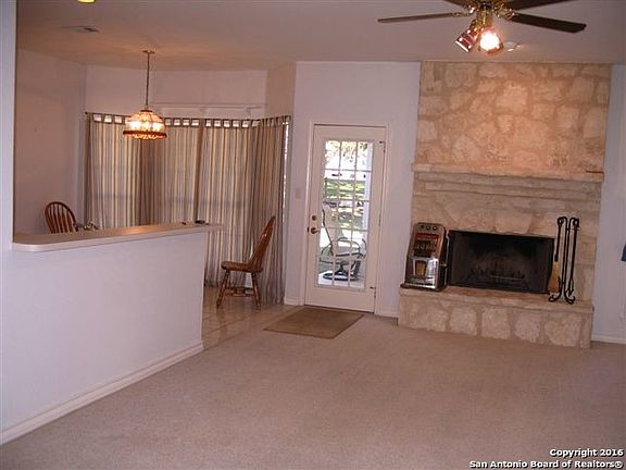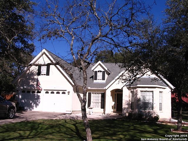 A very pretty setting with great curb appeal. Well maintained home in desirable Ranger Creek Subdivision on 1/2 acre covered in oak trees. Open floor plan, split bedroom arrangement, study/office, & formal dining room. Small bonus room used as a pantry. Nice wood burning fireplace. Plantation shutters in both bathrooms. Covered patio. No city taxes. Few blocks off IH 10 for commuting. Easy access to Boerne.