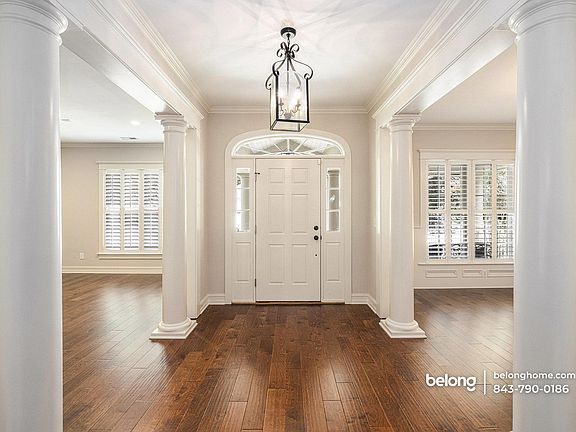 Thoughtfully designed with comfort, charm, and functionality in mind, this 4-bedroom, 2.5-bath home offers generous living space, refined finishes, and an unbeatable location across from Publix and neighborhood shops. You'll enjoy easy access to daily essentials, plus the added bonus of a vibrant community filled with amenities like a pool, fitness room, walking trail, dog park, and more. Inside, rich details elevate each room - from crown molding and wainscoting to plantation shutters and custom built-ins flanking the decorative gas fireplace. A bright, spacious kitchen features elegant countertops, abundant cabinetry, and brand-new appliances with advanced features. The layout is just as practical as it is welcoming: both the main bedroom and laundry area are conveniently located downstairs. The main suite includes a large bath with double vanities and a private water closet, which is mirrored in the second bath as well. Upstairs, a stunning bonus room with Brazilian wood flooring awaits your creativity - perfect for a home office, studio, or playroom. Large windows fill the home with natural light, while a dual-zone HVAC system keeps every space comfortable year-round. An in-ground irrigation system helps maintain the yard with minimal effort. Living here means enjoying peace and privacy at home while staying connected to schools, healthcare, childcare, and retail - all within minutes. *Two pets allowed. *Pet weight limit is 50 lbs - if your pet exceeds this, please reach out to see if we can accommodate! *Fireplace is for decorative use only and cannot be used without consent from Belong. *Our homes come as-is with all essentials in working order. Want upgrades? Request it through the Belong app, and our trusted pros will take care of the rest!