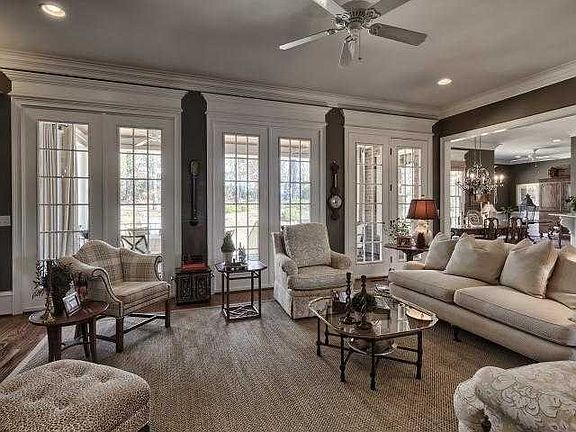 Stunning custom hm situated on gorgeous/elevated lot w/lake views from big covered front porch. Exceptional quality throughout! Extensive moldings, high ceilings(tongue&groove porch ceilings),hardwoods, 8' doors, marble tile, custom built-ins/cabinetry, wrought iron staircase, etc. Very spacious rooms, keeping rm off kitch/breakfast area. New stainless appliances.Huge Bonus Rm over 3 car garage with separate stairs & attached to upstairs.Professionally decorated, plantation shutters throughout. Absolutely one of the most well appointed homes currently on market in WCF for this price! Terrific outdoor living w/big covered brick pavered porch.