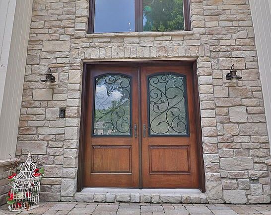- Exterior features: Stone, Wood