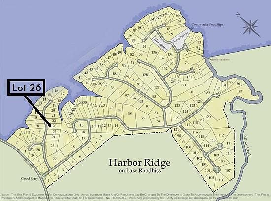 Fantastic 1.39 acre lot in Harbor Ridge, a gated community on Lake Rhodhiss! Offering community amenities such as secure entrance, community boat slips, pavilion, and secure boat storage, this community offers the quintessential Western North Carolina lake-living experience! This evenly sloping lot is fully wooded for privacy and ideal for basement home construction. Quiet, no-outlet street. HOA dues are $475/year. Value priced at $15,000 below tax value!