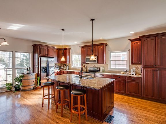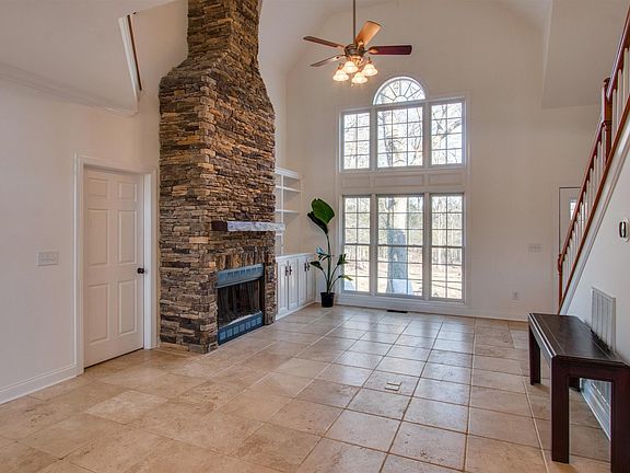 All Brick 4 BR home on 1.53 acres w/custom cherry cabinets, SS appl, Granite. High ceilings, stone fireplace in great room. Private wooded back yard backs to creek with canoe access to the lake, split rail fence and storage building.