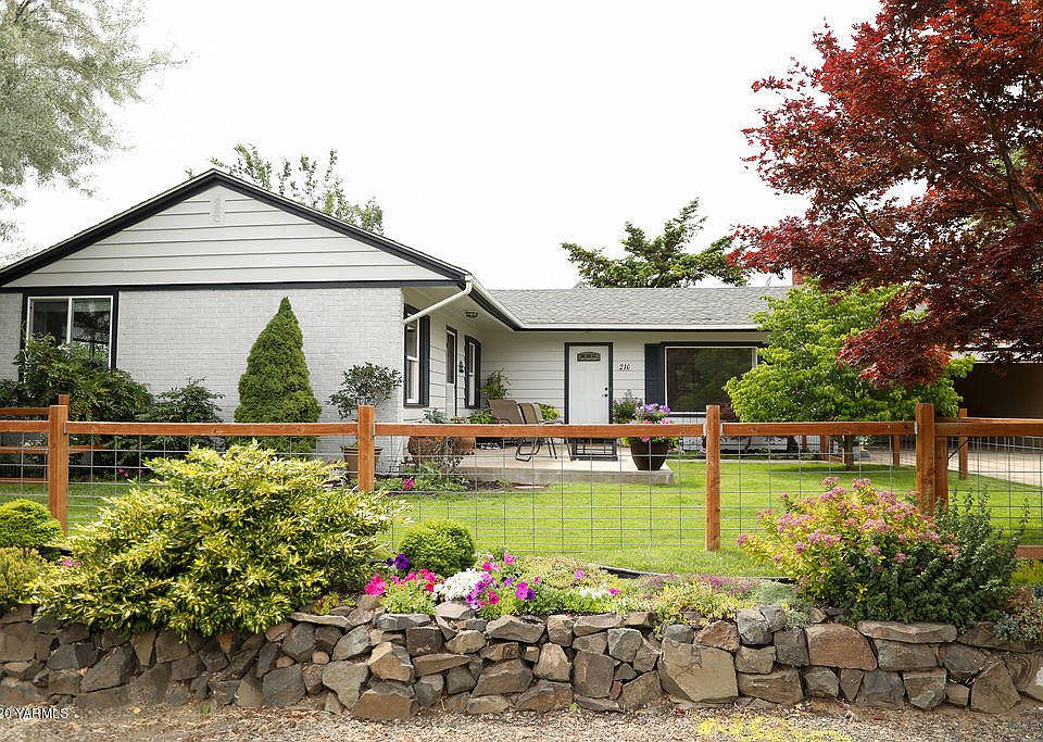 Enjoy summer evenings on the spacious patio outside of this lovely single-level rambler in Terrace Heights! The 1,351 square foot interior includes three bedrooms with an office space, one full bathroom, hardwood floors and vinyl windows throughout most of the home. Entering the home, you will find a spacious living room highlighted by the beautiful woodstove surrounded by cream colored stone, numerous built ins, and hardwood floors throughout most of the home. Outside you'll be amazed by the wonderful mature landscaping wrapping around the entire property. Additional features include a forced air gas furnace, updated electrical panel, composition roof, fresh exterior paint, fenced yard, and a two car attached garage!