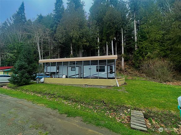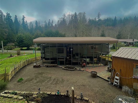 Discover your ideal getaway or permanent outdoor haven on the spectacular Olympic Peninsula! This double lot offers a livable shed, large storage shed, large fenced yard, fire pit area, private well, septic system & power hookups for your RV plus guest's RVs. Relax under the 35' cover, shielding you from sun or rain while soaking in the wonderful outdoors. Tucked away on a tranquil, dead-end street, enjoy privacy & peacefulness listening to the birds & relaxing sounds of the river. Lot is located near Olympic National Forest & Olympic National Park, indulge in endless recreational activities. Plus, you have private access to 40 acres of tidelands, a boat launch, clubhouse & a riverside park & picnic area. Come see it to believe it!