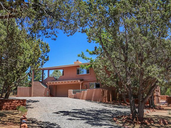 This immaculate home is tucked away in one of the best areas in Sedona, Arizona! It sits on a 1.2 acre property with red rock views of Coffee Pot, Airport Mesa, Thunder Mountain and Cathedral Rock! There is plenty of parking for guests, an established shaded garden and landscaping with ambient outdoor lighting. The semicircular driveway accommodates RV turnaround. This home has two main entrances. The front door is on the second floor accessed from the front staircase. The second floor covered patio is a very peaceful outdoor space that has spectacular views of the red rocks! The second private entrance is located in the back of the home and is accessed from a pathway on the right. Large great room features a wood burning stove, dining room and freshly updated kitchen with new