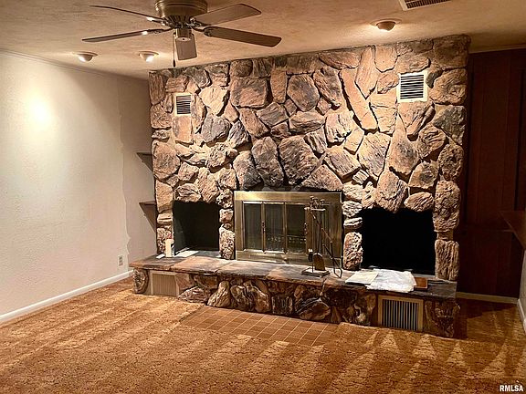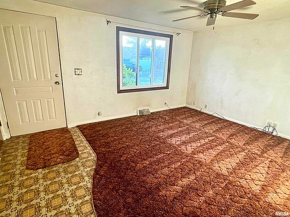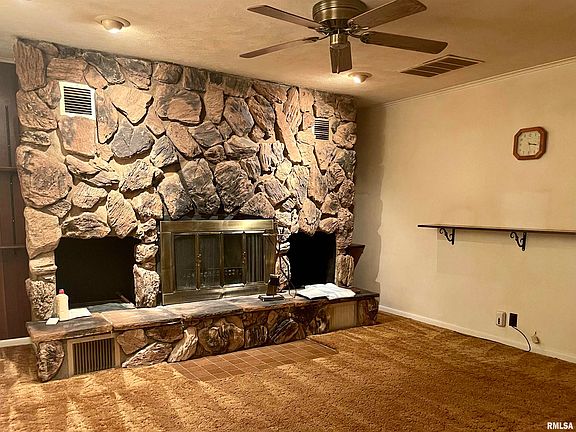 Check out this 3 bedroom ranch tucked away on a small side street in East Peoria! Unique floor plan seamlessly connects the main living areas with all wings of the home. Through the front door you’ll be greeted with evening sunshine pouring through the large living room window, adding warmth and welcoming you into the spacious eat in kitchen. Enjoy relaxing by your wood burning fireplace this winter, which features a beautiful floor to ceiling surround with built ins for wood stacking. The oversized garage has an attached 14x19 workshop with storage shelves and cabinetry ideal for housing tools, toys, etc. Generously sized concrete slab with private backyard would be perfect for cook outs and hosting. Schedule your tour today for this move in ready ranch! Property is to be sold AS-IS.