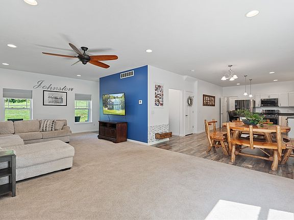If you're seeking a harmonious blend of luxury, nature, and convenience, this is the home you've been waiting for! At just 6.5 years young, this custom built 4 bedroom, 2.5 bath home includes many updates and is situated on just under 4.5 acres. As you walk in, you are greeted by a 2-story foyer with plenty of natural lighting. The kitchen features white shaker style cabinets, stainless steel appliances, ample storage space, and a large kitchen island that makes entertaining guests a breeze. Laundry is conveniently located off of the kitchen. Enjoy relaxing in the newly installed covered back patio or around the first-floor fireplace in the enormous living room. All four bedrooms provide plenty of space for family and guests, each offering comfort and privacy. The master suite is a true sanctuary, boasting vaulted ceilings, a luxurious ensuite bathroom and a walk-in closet. Endless possibilities to make the basement area what you want. A true must see!