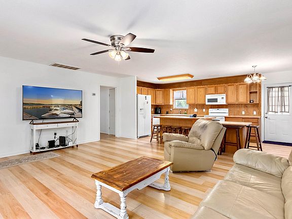 Three bedroom, 2 bath home in Highland Haven with nicely shaded front yard and spacious back yard with fire pit. New painted sheet rock in front room, new attic ladder, 50 gallon electric water heater installed 2 yrs ago, new casing on doors, siding replaced, well - new pump, HVAC - newer register, newer toilets. Owner has put a lot of work in this home! Wired for stereo in living room. Schlage smart lock for keyless entry for the front door will convey. Well and pump are located in storage shed at the back of the property. Neighborhood offers a an amazing park for swimming and enjoying lake LBJ. There are also boat ramps that can be used by Highland Haven residents. One is across the street and another is a few blocks away. Dove Park is also in Highland Haven. Minutes from downtown Marble Falls.