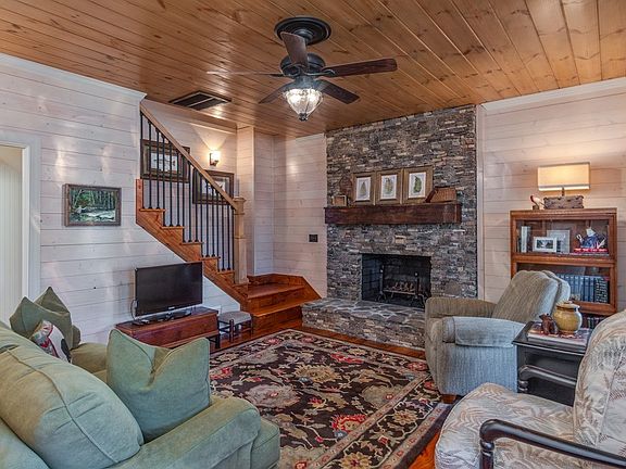 If you are looking for a Beautiful Mountain Getaway, this is it!!! Privately situated 2 bd 1 1/2 bath immaculate home bordered on 400+ feet of Bold Stocked Trout waters. Custom hardwood floors which came from 100+ year old heart pine, impressive shiplap interior walls, tongue and groove wood ceilings, real stacked stone wood burning FP including central heat and air. Granite brushed/honed countertops in bathrooms and granite countertops in kitchen. This home could be in a magazine with such tasteful decor, window treatments to the light fixtures and everything else. It's a must see for only $229,000