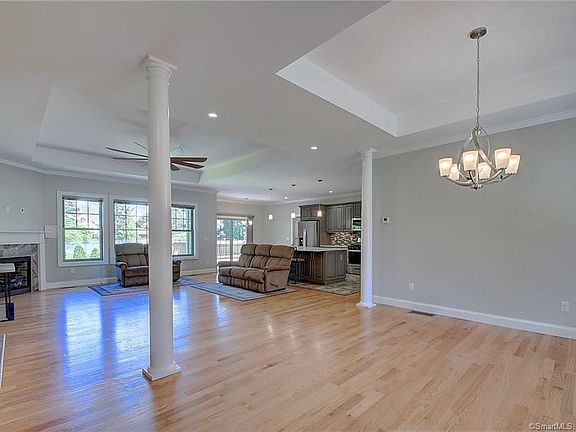 Looking for serenity & simple elegance in a country living atmosphere? Look no further than this 2019 built sprawling open floor plan ranch. With endless upgrades to enjoy, picture walking into an open concept ranch with tray ceilings, pillars, crown molding, under cabinet lighting, paneled doors, new washer & dryer, recessed lighting, quartz counter tops in the kitchen, granite in the bathrooms, an over-sized center island & breakfast bar, endless soft close cabinets, stainless steel appliances, a gas log fireplace to snuggle up to on cold winter nights, hardwood floors, tile floors in bathrooms and kitchen, pantry, and mudroom, custom pavers, additional custom landscaping around the house, zoned heating & central air conditioning, ceiling fans in all the rooms, three FULL bathrooms, a third garage bay, new blinds throughout the house, and the list goes on! With panoramic field views and located just 10 minutes from I-91, access to restaurants, shopping, movies, outdoor activities, health clubs, golf, and swimming is simple! You truly get the best of both worlds - privacy and convenience. Do not miss this opportunity and schedule your private viewing TODAY! (Note virtual 360 tour included!)