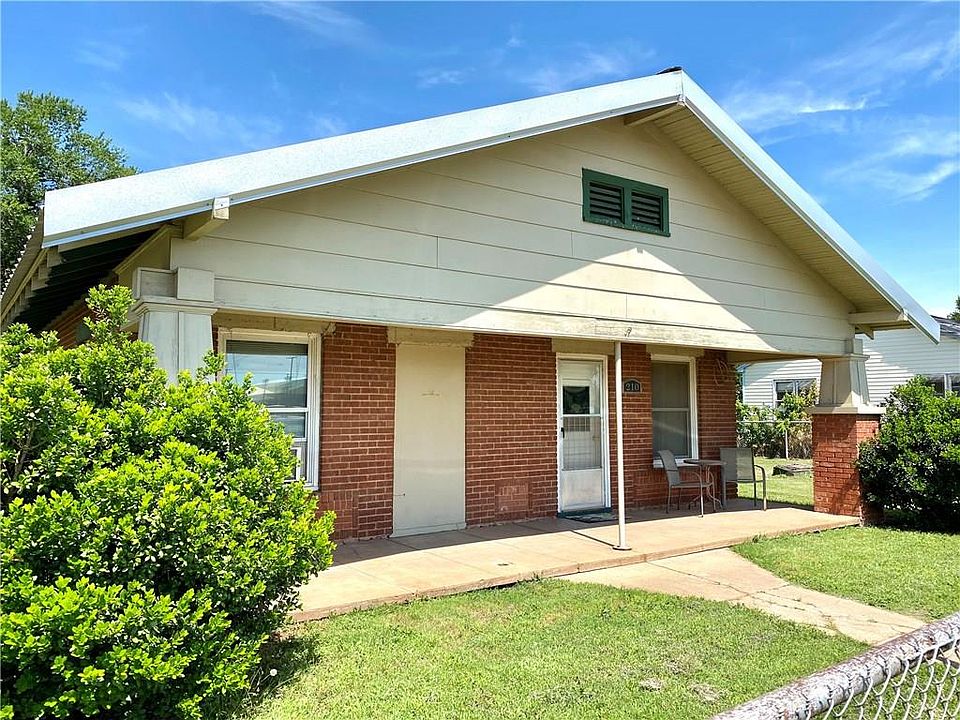 This charming, craftsman style home is one you don't want to miss! Perched on 6 city lots, this home is spacious, and offers great living and entertaining space. You are greeted with an over sized, east facing sitting porch that allows for a memorable morning coffee each and everyday! Notice the original, 20th century charm we all love! The home is filled with beautiful trim work, craftsman style accents, and original wood flooring that makes this home something truly special. The over sized living and dining area open up to the kitchen, making this the perfect home to host and entertain! Additional features and updates include: high-end, insulated windows, water heater, metal roof, and marble counter tops. The home is equipped with a storage shed and storm shelter. Schedule your showing today!