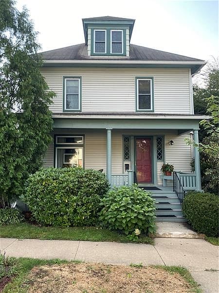 This magnificent 3 story home will allow for all the space you need! This well kept home has been with the same family for years and has been very well maintained! Features 4 bedrooms, 2.5 baths, large living room, lovely formal dining room w french doors, plus a huge addition that includes a first floor family room with fireplace and additional room on the second floor that is used as a home gym, but use your imagination!!!!! Beautiful hardwood floors and lovely oak staircase and woodwork. This home has had several updates that have been made over the years. Large third floor for plenty of extra living space or storage. Large deck out back overlooking the landscaped yard plus detached garage. Cozy front porch for those beautiful summer evenings.