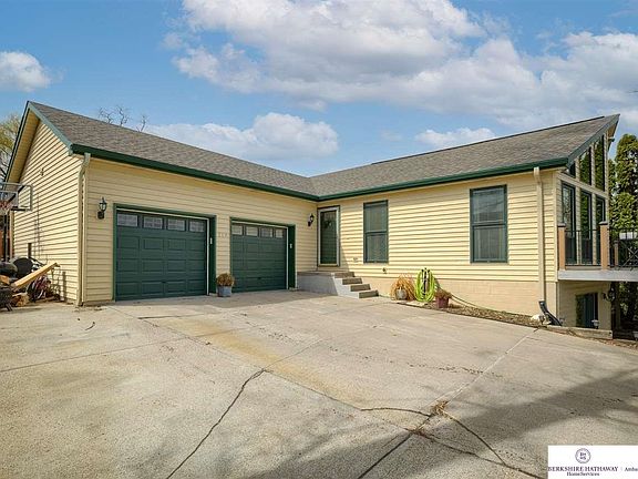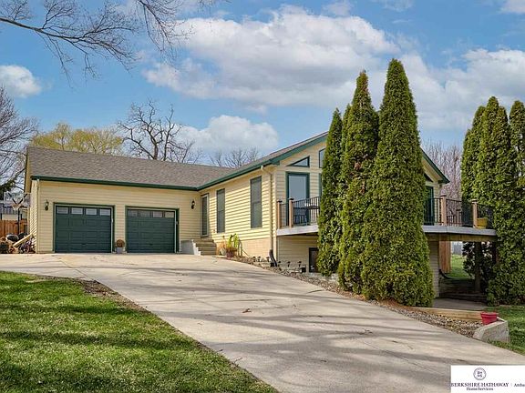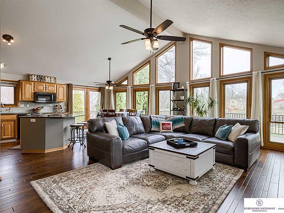 Stunning Fort Calhoun walk out Ranch! Open concept living room & kitchen have soaring vaulted ceilings & a wall of windows to enjoy the view. Hardwood flooring installed throughout the main floor in 2019. Kitchen has been updated w/granite countertops & newer stainless steel appliances. Convenient mud room & laundry w/sink right off the garage. Spacious primary bedroom w/walk-in closet & bath w/whirlpool tub & shower. Main floor bath is updated w/new countertops & tile flooring. Lower level boasts a huge family room, two bedrooms, flex space for an office or playroom & a full bath. Move in & have all summer to enjoy the pool & XL deck in the backyard. Many energy efficient updates including tankless water heater, water softener & whole home water purifier installed in 2020. New furnace installed in 2016. Home sits right across the street from a park & just a few blocks from the elementary school. Make sure to check out the virtual tour!