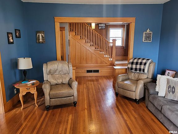 Great Home Located in Camp Point. This home has 4 Bedrooms 3 Full Baths (The master bedroom and bath are located on the main level) All 3 baths have been recently updated. Beautiful original woodwork throughout the home. Vinyl replacement windows. 1 acre yard. Nice large 1700 square foot 4 car garage. Stove, Refrigerator, Dishwasher, Water Softener, and Sump Pump convey. Home sale subject to sellers successful closing.