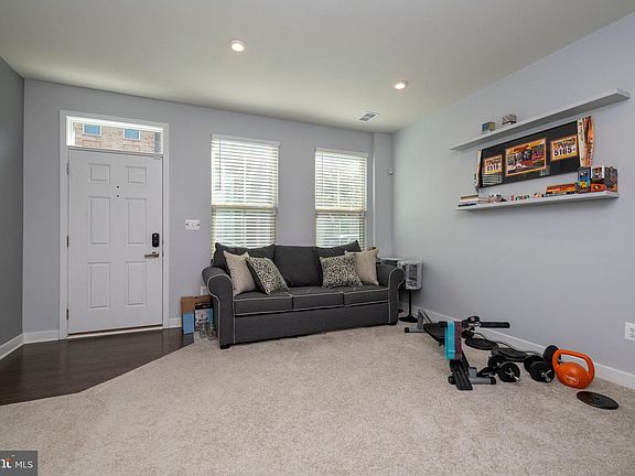 NEW PRICE! Oldham Crossing - Built in 2019, this 2BR, 2.5BA, 1 Car Garage Town home features an open floor plan, private deck and backs to open space! All the conveniences of city life with the amenities of 21st Century Living! The first level offers a large one car garage that has finished walls, custom floor epoxy and lots of storage. Enter the first family room where you can relax in your family room with recessed lighting or use the space as a home gym. The first level also offers an oversized closet for all your coats and sports gear! The staircases have upgraded banisters and have stained hardwood stairs. The main living area offers a large open floor plan Living /Dining/Kitchen with hardwood floors and recessed lighting throughout the rooms. The white kitchen cabinets have slow close feature, quartz countertops, stainless steel appliances and a beautiful backsplash. An island in the kitchen offers more room for food prep and entertaining. The living room is 5-1 home theater prewired and has added electric outlets for your wall mounted TV. The dining area features a dry bar and opens to a large back deck that overlooks open space and has views of the city and a perfect location to watch the Harbor Fireworks! A powder room is also on this level. Upstairs is carpeted and has two bedrooms, including an owner's en suite with a private bath and California Closet systems in the owner's closet. This room also has an outlet for your wall mounted TV. Laundry is on the second level so no stairs to do laundry! Custom paint throughout. The house also includes a transferable security system which includes 2 smart locks with keyless entry, doorbell camera and rear analytical camera. (Contract is valid through 2024 at $55/month. Down the street is a dog park and a playground! This house has it all!