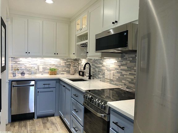 Direct Bay View in this beautifully renovated condo! Not only is this home gorgeous but so much thought went into the redesign with genius use of the space! The stunning kitchen with quartz countertops, European sized appliances, roll out cabinetry and so much more, again reflecting the attention to detail regarding the best use of every inch of space. Bright white living area with a sweeping view of Mobile Bay and Fairhope's gorgeous sunsets! Spa inspired bathroom is an absolute delight! Bay Winds is a highly sought after complex for both it's amenities and it's location! It features bay frontage for all of the residents to enjoy with a sparkling pool, a large pier with a covered gazebo, and a meeting room. This property is so close to everything..downtown Fairhope, Fairhope Public Pier, Bay Front Park. Truly a rare gem!