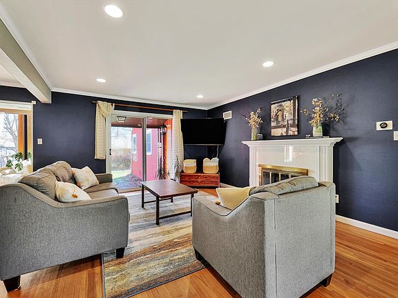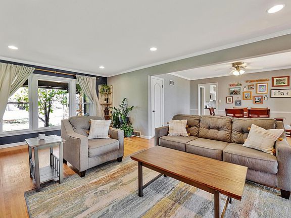 Crown Heights home on a treed lot with Mid-Century Modern Charm and modern amenities. Highly desirable location with proximity to the VA, Parks, Schools, and Restaurants. This 3 bedroom home has a true master suite with its own dressing room, new luxury modern bathroom, an office area with multiple desk configurations, and a living area with 1 of the 3 fireplaces in the home. Also enjoy the beamed vaulted ceilings and greenhouse attached to the master suite. Loads of AM and PM natural light fills the home thru new windows. Formal dining area for family gatherings and large living room as well as a sunroom/family room off the kitchen with a stunning mid-century bar built in. Kitchen is large and updated lots of space for cooking and prepping. Even room for a small breakfast table. New master bath, newer windows zoned HVAC. Basement so much potential, spacious family room has fireplace nonconforming bedroom and bathroom ready to finish. Seller offering $1000 credit allowance for garage doors. All deemed reliable but not guaranteed. Seller selling as is.