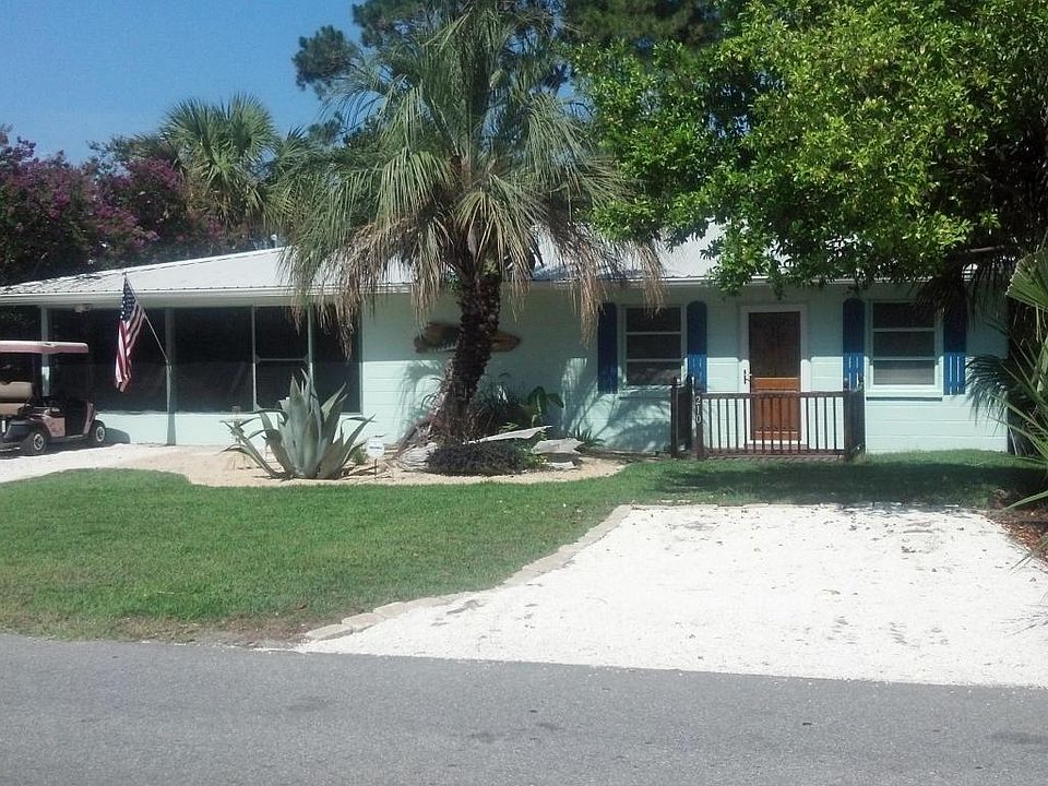 Delightful Florida beach cottage and a 1.5 block short walk to the beach! Fully furnished 2 Bedroom, 2 bath cottage that was remodeled in early 2014. Upscale kitchen appliances and unique bar. There is a laundry room and storage building. The roof is a lifetime metal roof that was installed in the remodel along with a fully landscaped yard with its own irrigation well and sprinkler system, fenced backyard, and a screened-in party porch for entertaining and relaxing. A few wall items are excluded from sale.