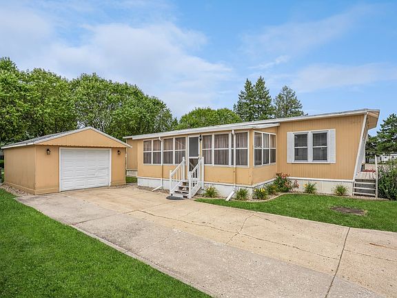 Nice mobile home in the quiet 55+ Western Village Community. Large enclosed sunporch for extra space. Open living room with laminate floors, accent beams on ceiling, and many windows for natural light. Kitchen with laminate floors, all appl., breakfast bar and seating are with corner hutches. Good sized Primary bedroom with walk-in closet and bath. 2nd bedroom is large with 2 closets. Full hall bath. Laundry room with cabinets and inc. washer/dryer. Oversized 1 car garage. Close to shopping 2025-01-13