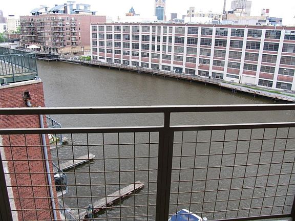 Fantastic loft style condo on the Milwaukee River. Old World charm and character in Historic Third Ward. Private balcony overlooking the river, wood flooring, high ceilings, maple cabinetry. Secure, heated underground parking with storage unit. Exercise room, community rooftop deck. In-unit laundry, all appliances included. Pet allowed, dog up to 50 lbs. Walking distance to shops, restaurants, entertainment.