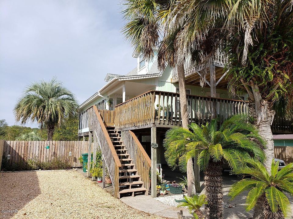 Located on the west end of Panama City Beach, 1 1/2 blocks from the beach, not in a flood zone and no HOA fees makes this the perfect beach house for full time residents, your vacation home or investors!This great home features 3 bedrooms (each with their own full bath), half bath downstairs, laundry room dining area and living room, vinyl plank flooring throughout the 1st floor, leather granite kitchen counter tops and new dishwasher. The master bedroom is located on the first floor. Walk out the dining room doors to a covered deck in front and enclosed sun room on the south side. Two additional bedrooms are upstairs with a covered deck off of the front one.