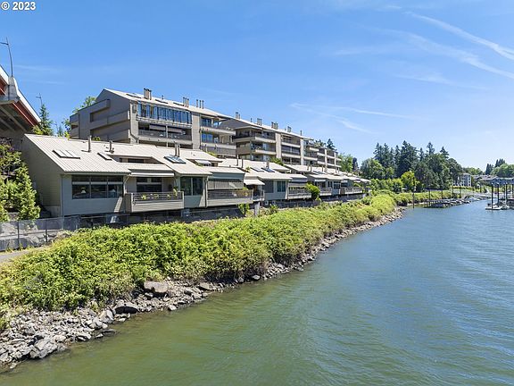 Luxury living on the Willamette! Enjoy expansive tranquil water & wildlife views from every room! QUIET waterfront 2 level townhouse w/private decks; vaulted open concept flrpln; 3 frplcs; sun drenched via skylights & lrg windows! Gourmet kitchen w/Thermador fridge, granite & hrdwds. Primary suite w/gas frplc, deck & walk in closet. The ONLY Sellwood Harbor townhome w/detached garage, storage room & cov parking! Amenities incl pool, indoor tennis, gym, grounds, management & secure gated entry.