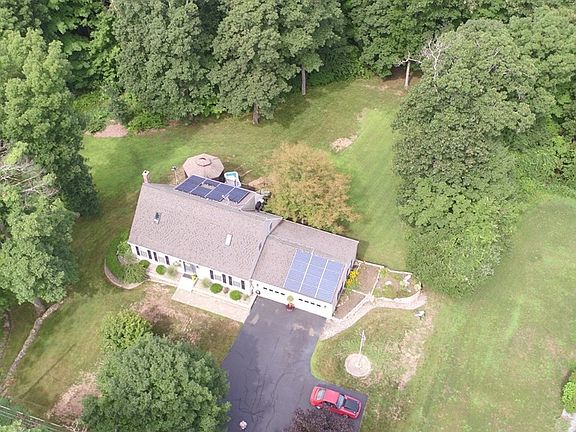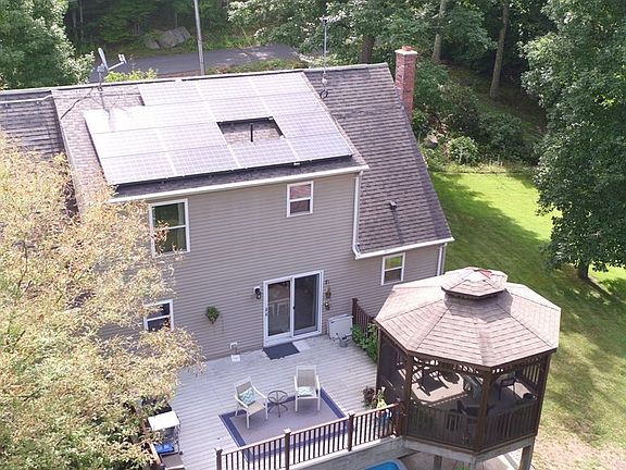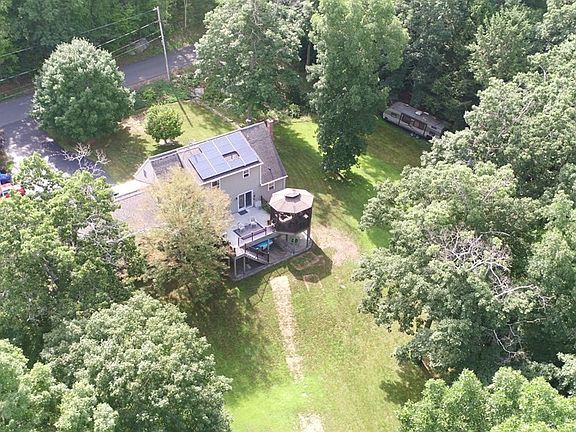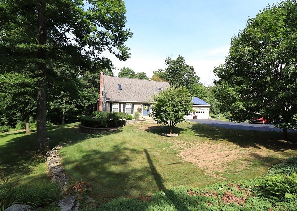 Watch the video tour! This 4 bedroom, 2.5 bath cape sits on 1.25 acres complemented by stone walls, beautiful gardens, and a composite deck that includes a screened-in gazebo with a ceiling fan. The first floor has an open floor plan with a living room open to the spacious, dine-in kitchen with granite counters, tile and hardwood floors, newer appliances, and a slider to the back deck. There is also a first-floor master-bedroom with two closets and master bathroom. A half-bath with connections for a washer/dryer are a bonus. There are 3 bedrooms and a full bathroom on the second level. Two of the bedrooms have skylights, as well. The walk-out basement has a pellet stove and has been sheet rocked for later finishing. This home is heated with hot water baseboard while also offering central air-conditioning. The back deck also has access directly from the two-car garage. There is also shed and additional storage over a concreted slab under the deck. This is a great opportunity