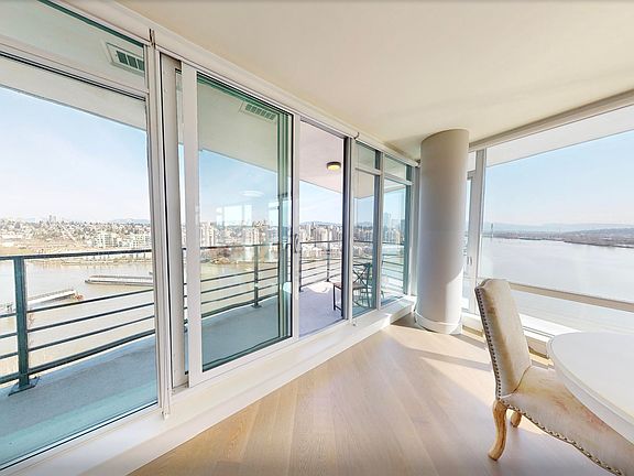 This super bright 2-bedroom corner unit at The Peninsula is surrounded by views & natural light, featuring floor-to-ceiling windows that capture the Fraser River, city, & mountains. The chef-inspired kitchen is a dream, showcasing fully integrated Gaggenau appliances and custom Italian cabinetry. The primary bdrm offers serene views & spa-like ensuite with Nuheat heated floor. With engineered hardwood throughout and high-end finishes in every detail, offers sophisticated waterfront living — modern, elegant, and filled with light. With easy access to parks, riverfront paths, and local amenities. The Q & Q ferry dock is just a minute away, offering a quick 5-minute ride to the New Westminster Public Market. Luxury, resort-style living experience! Open house: Oct 19(sun), 2-4pm.